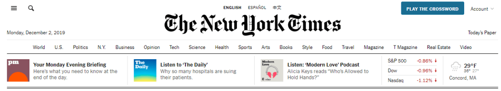 The New York Times website states “Playing The New York Times Crossword means entering a world where your curiosity is always rewarded.” The puzzle is available in the print version, but there are also versions for mobile apps, and miniature variations that subscribers can play.