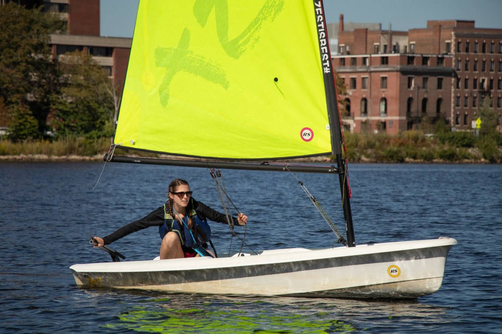 Sailor prepares to change direction on the Charles on September 19, 2019